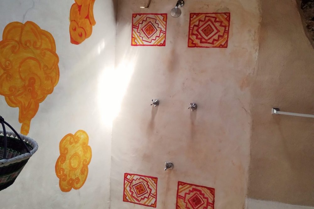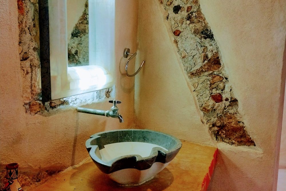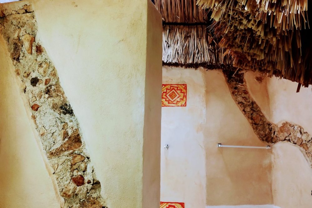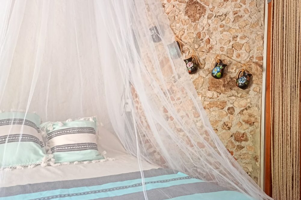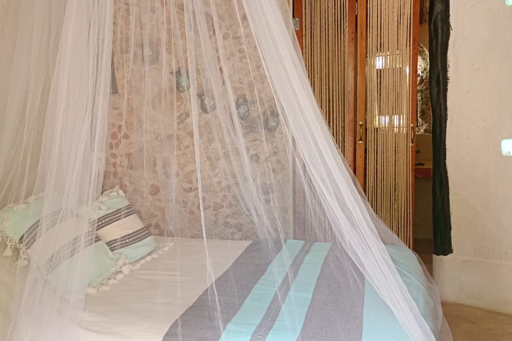 Casa Maya Toh es una armoniosa habitación circular. La ducha del baño da la sensación de bañarse en una caverna. En la habitación el techo es 1,5 veces más alto que las paredes, lo que dará la sensación de mucho espacio. Toh es el nombre de un hermoso pájaro azul de larga cola que parece y se mueve como un reloj de péndulo que en ocasiones viene a visitar Aldea Maya Toktli Orígenes.